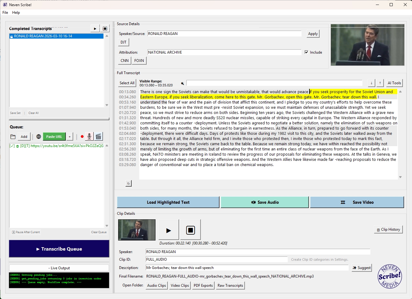 NevenScribe is a fast, locally powered transcription and clipping system built to solve a simple problem: